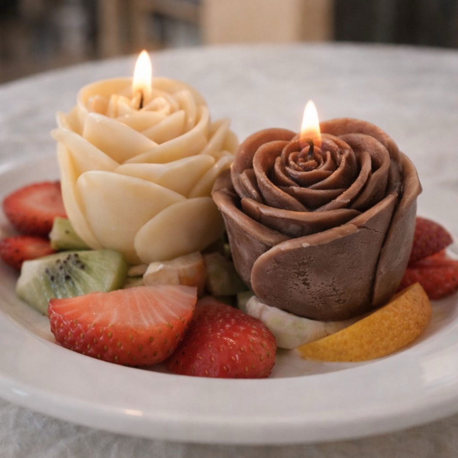 Sweet, edible dessert candles designed to melt into a warm dessert spread/dip/sauce.